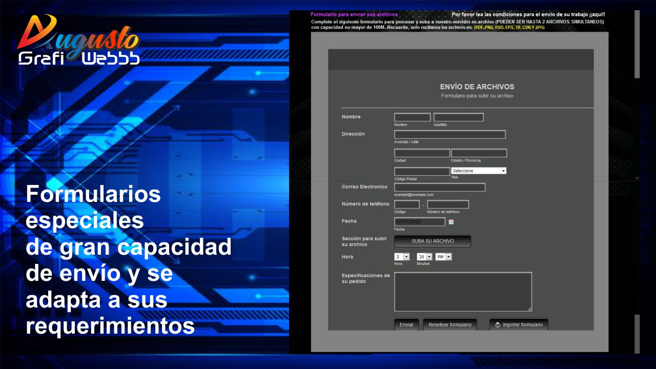Como por ejemplo formulario especial para envío de archivos muy pesados con capacidad de hasta 150MB